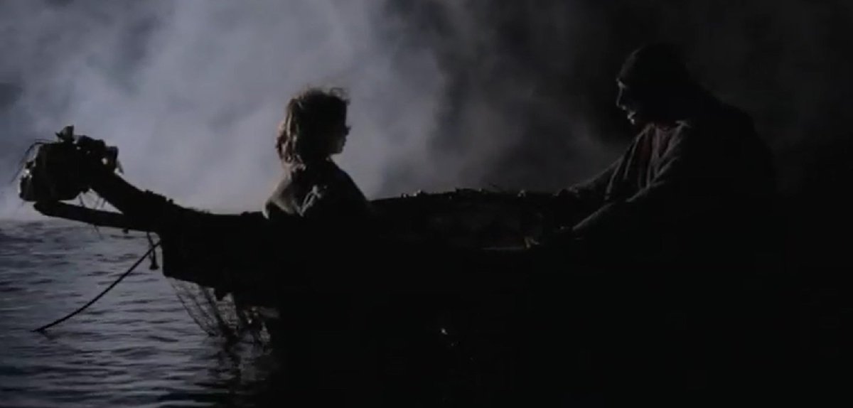 marrón y negra capa, tan negra como el color de su barca, navega con sigilo en