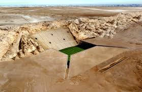 Un campo de fútbol bajo las arenas del desierto