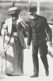 junto con su criada de camino a un barco a vapor que estaba anclado en el lago